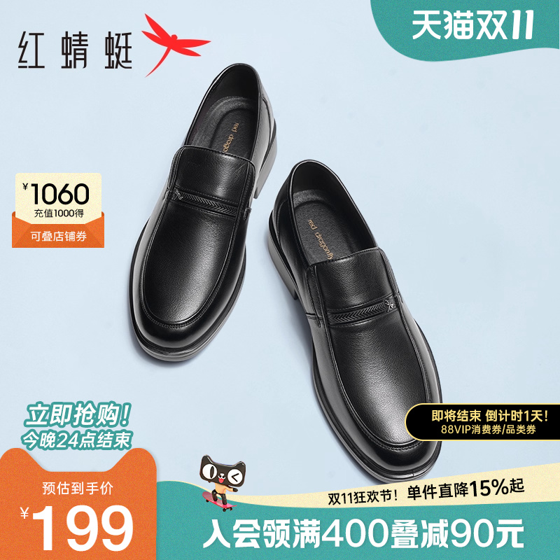 红蜻蜓男鞋商务休闲皮鞋男士职场通勤真皮轻便一脚蹬中老年爸爸鞋