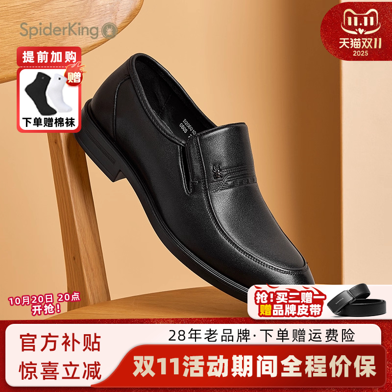 蜘蛛王男鞋秋秋款父亲皮鞋男真皮休闲一脚蹬软底中老年男士爸爸鞋