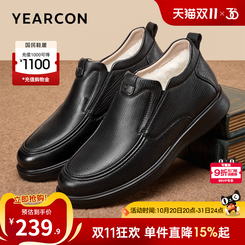 意尔康男鞋冬季加绒低帮二棉鞋男士真皮商务休闲皮鞋中老年爸爸鞋