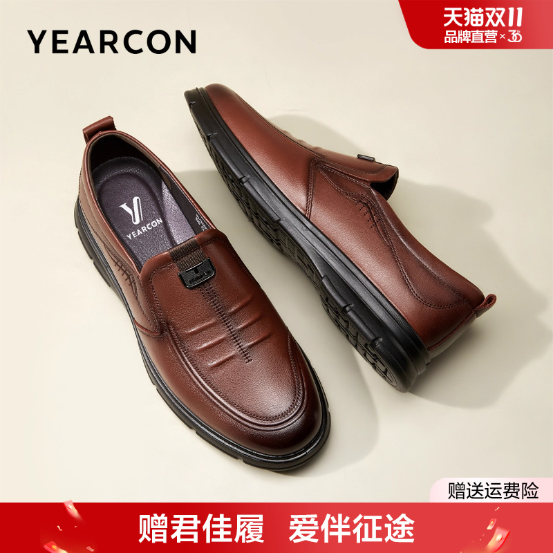 意尔康男鞋真皮商务休闲皮鞋男士一脚蹬单鞋中老年爸爸鞋父亲老人