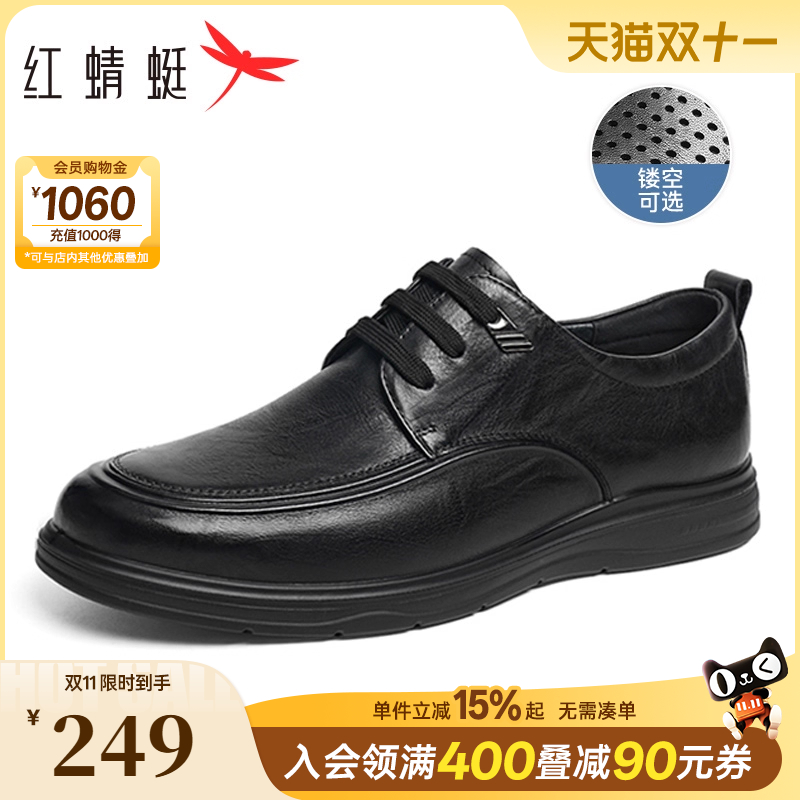 红蜻蜓男鞋秋季男士真皮商务休闲皮鞋软底鞋子透气中老年爸爸鞋男