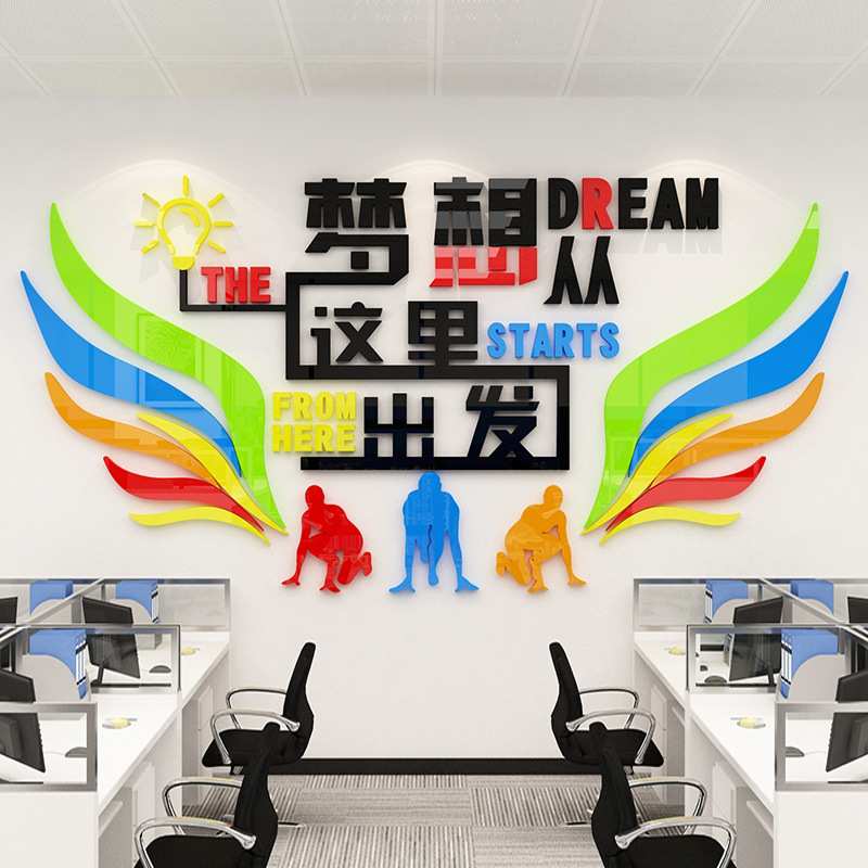3d立体墙贴励志办公室装饰公司标语贴纸班级文化墙梦想从这里出发