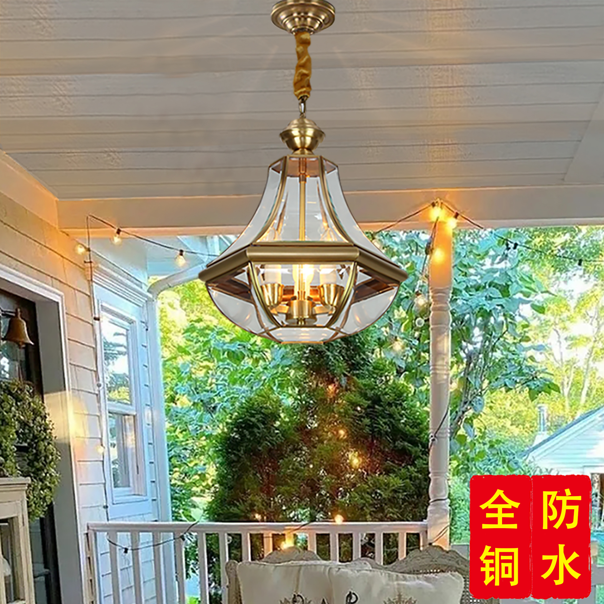 户外吊灯全铜防水庭院凉亭亭子家用室外别墅花园阳台露台屋檐吊灯