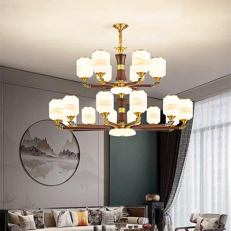 新中式客厅吊灯全铜实木高端中国风复式别墅大厅餐厅灯2025灯具
