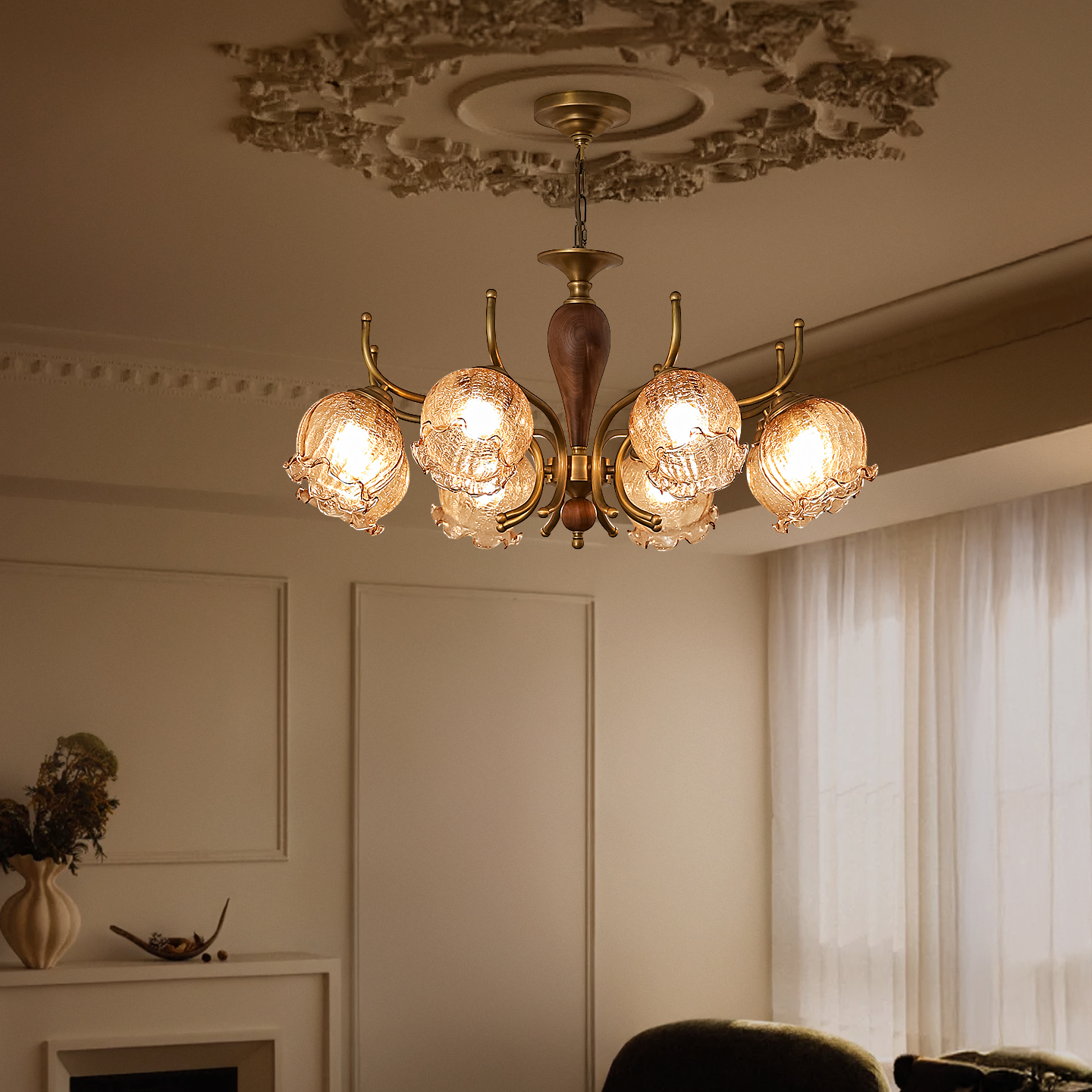 罗曼全铜法式中古美式复古客厅吊灯北美黑胡桃木怀旧vintage主卧