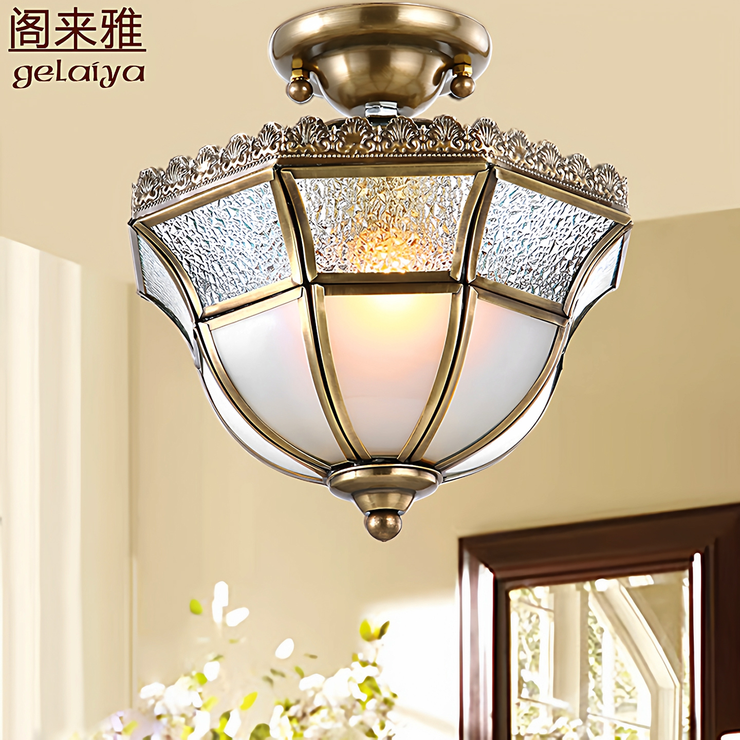 美式简约吊灯全铜餐厅卧室入户门厅灯欧式复古过道走廊半吸顶灯具