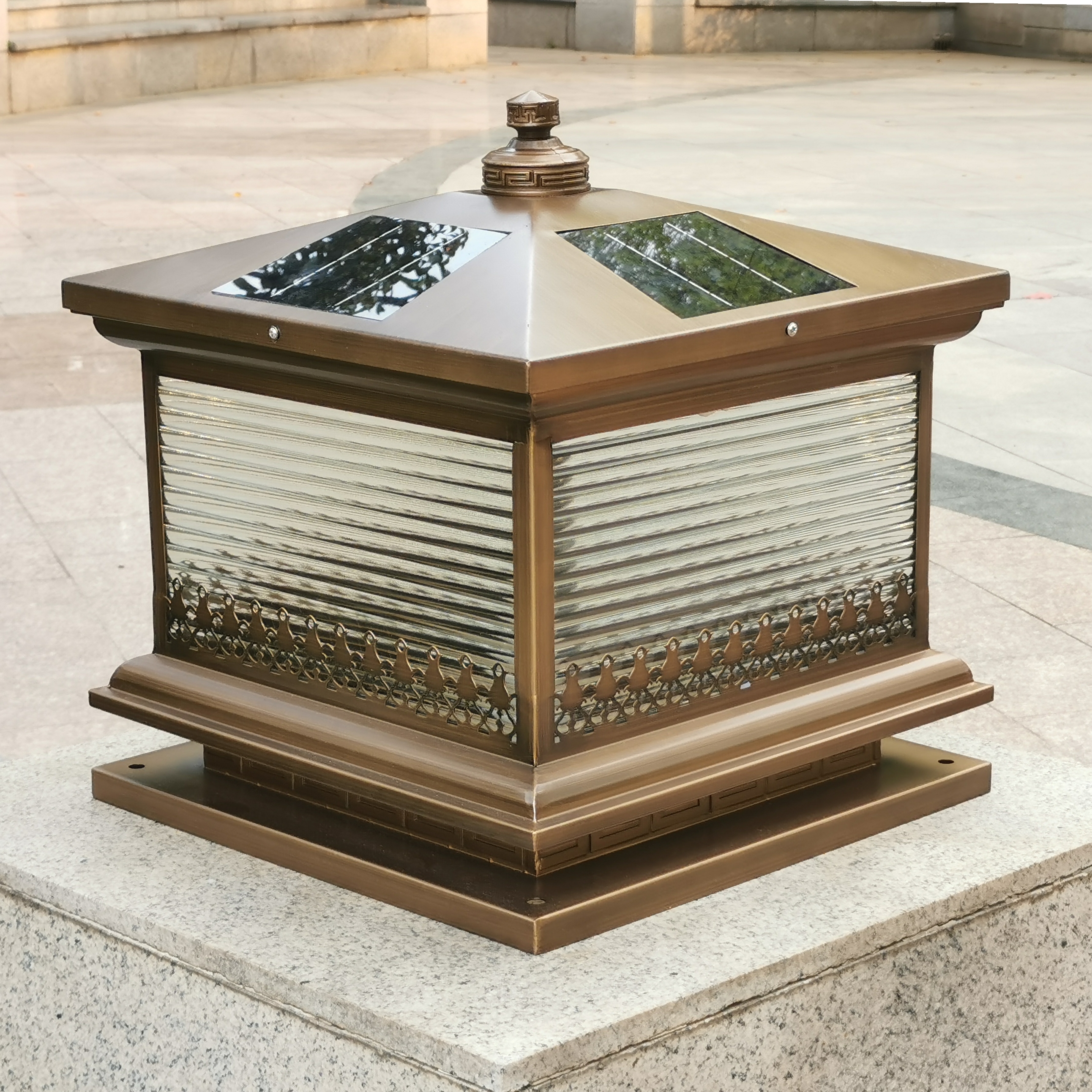 太阳能柱头灯全铜新中式户外庭院灯门柱灯别墅大门灯围墙灯柱子灯
