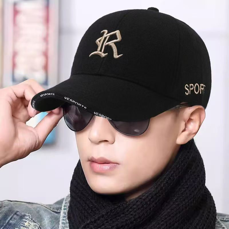 耐水洗帽子男秋冬高级感户外鸭舌帽冬季加绒保暖黑色中老年棒球帽