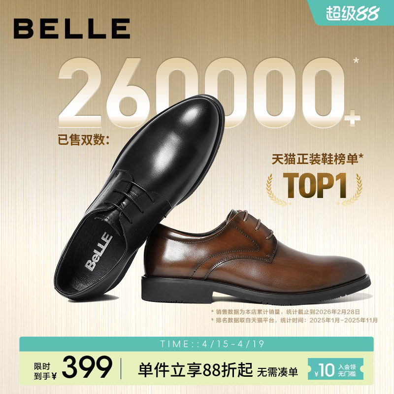 百丽男士春夏款透气正装商务德比内增高真皮鞋子结婚鞋新郎10822C