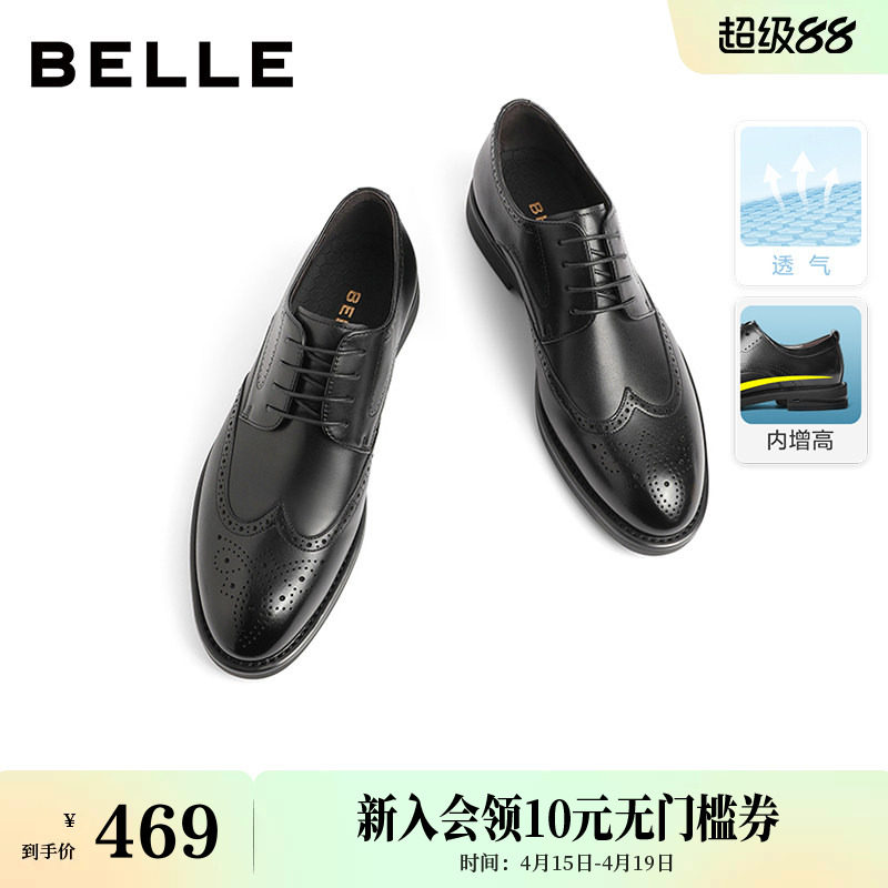 百丽男鞋商务正装结婚鞋男士真皮鞋夏内增高通勤牛津德比鞋A1095