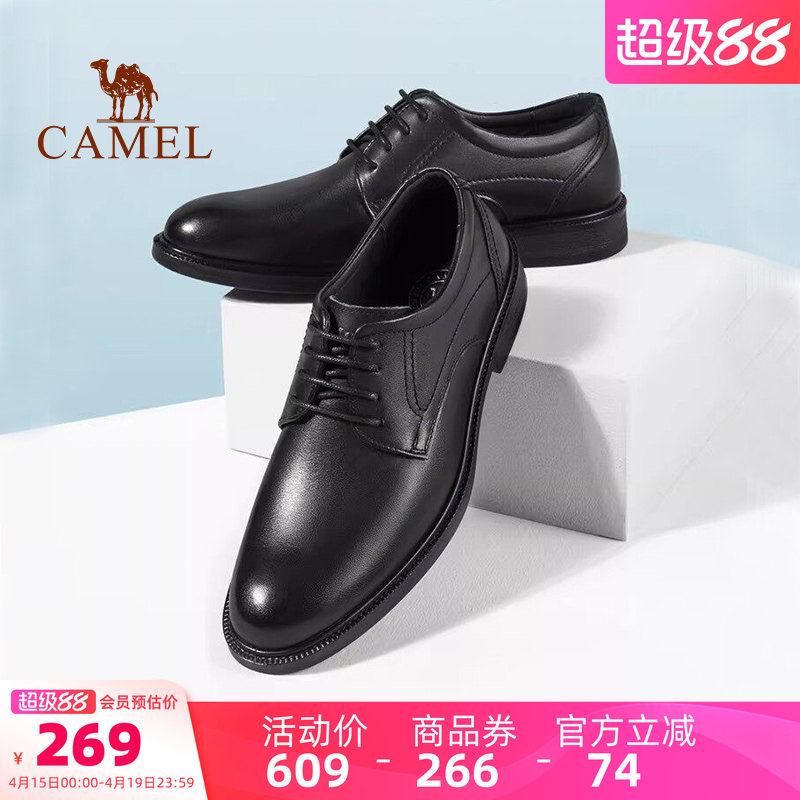 骆驼男士皮鞋2026春季新款舒适软底正装商务真皮结婚新郎德比鞋男