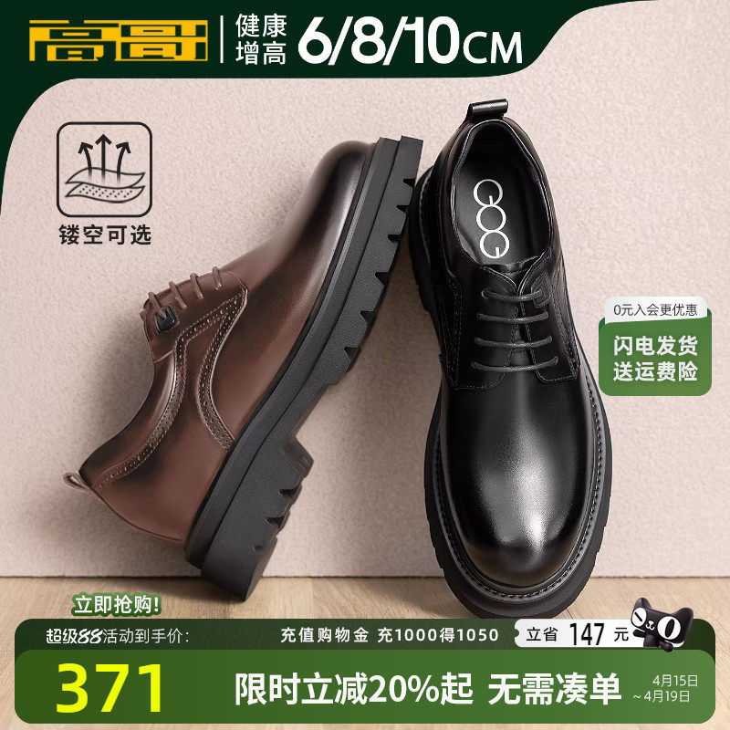 老人头男鞋春季新款商务正装男士皮鞋真皮增高德比软底新郎结婚鞋