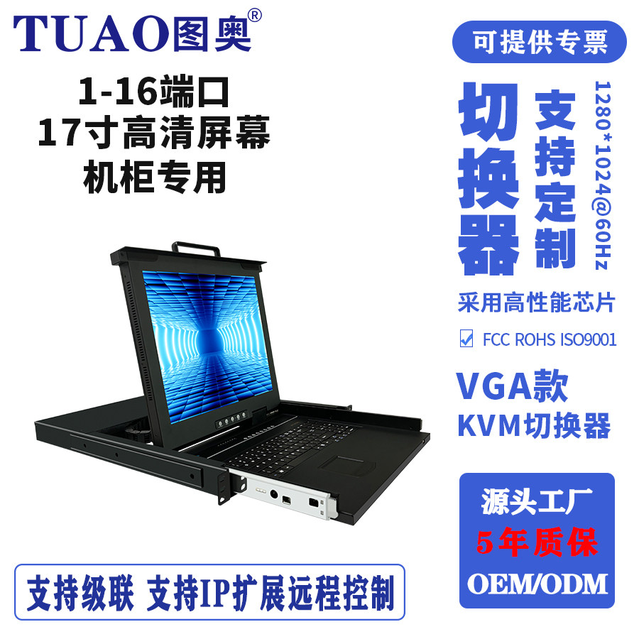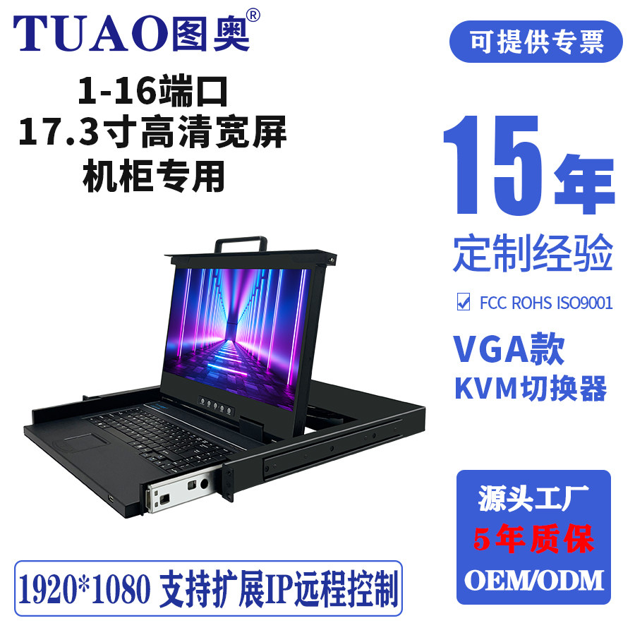 TUAO(图奥) kvm切换器8/1/4/16口VGA17/17.3寸机房设备电脑机柜显示器键盘鼠标ip远程1920*1080高清显示屏