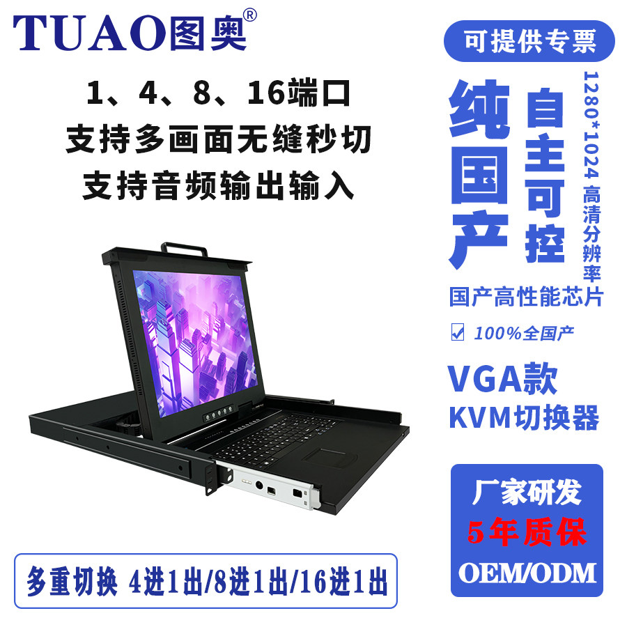 图奥自主可控国产化kvm切换器支持音频输出输入支持秒切高清17寸19寸1/4/8/16口vga服务器数字机房机架式kvm