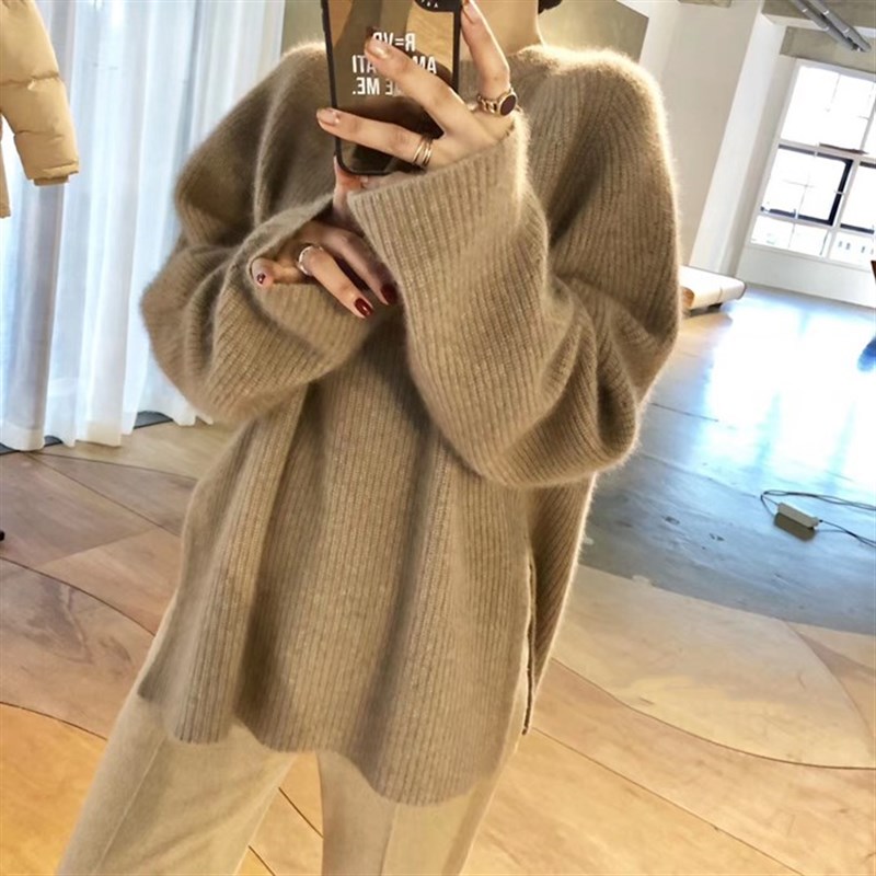 2025新款韩版圆领羊绒衫宽松套头加厚羊绒毛衣女驼色慵懒针织打底