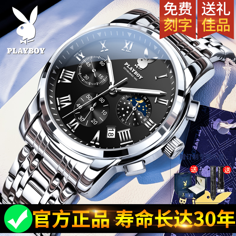 2025新款花花公子正品名牌男士手表男款全自动机械防水学生石英表