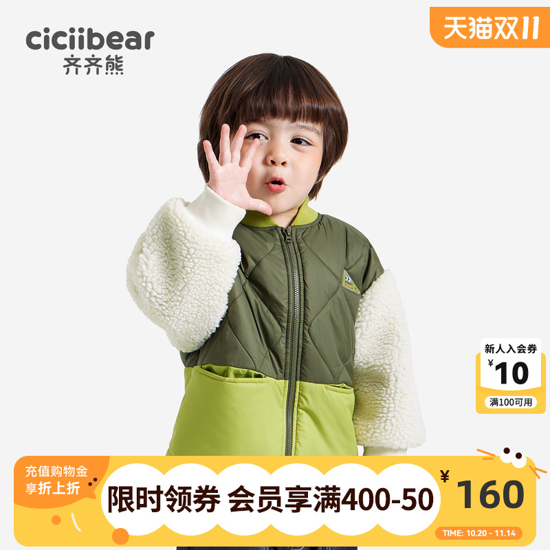 齐齐熊儿童棉服男童棉袄宝宝冬季棉衣夹棉加厚冬款外套女童小童装