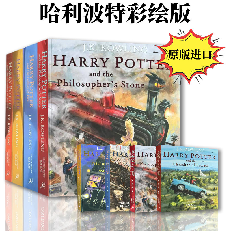 哈利波特英语原版 彩绘 harry potter 哈利波特平装插画版 哈利波特与魔法石 哈利波特与密室等 铜版纸 平装 精装收藏版