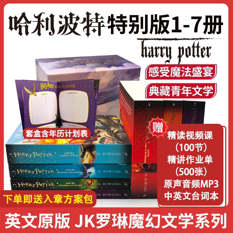 英文原版 Harry Potter 哈利波特与魔法石、密室、阿兹卡班囚徒等7册单册+盒装送年度计划表 Bloomsbury英版 JK罗琳 国外畅销小说