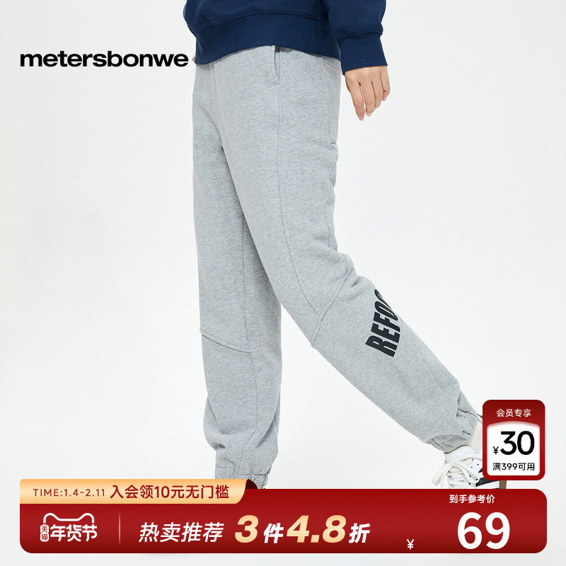 美特斯邦威卫裤女秋冬宽松休闲运动潮流百搭裤子收脚拼接针织长裤