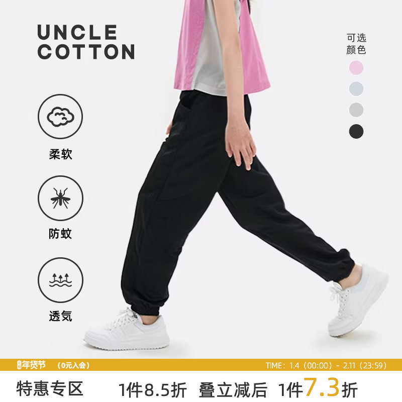 棉叔叔女儿童夏季防蚊裤优可丝宽松冰麻凉感男童运动收脚口长裤子