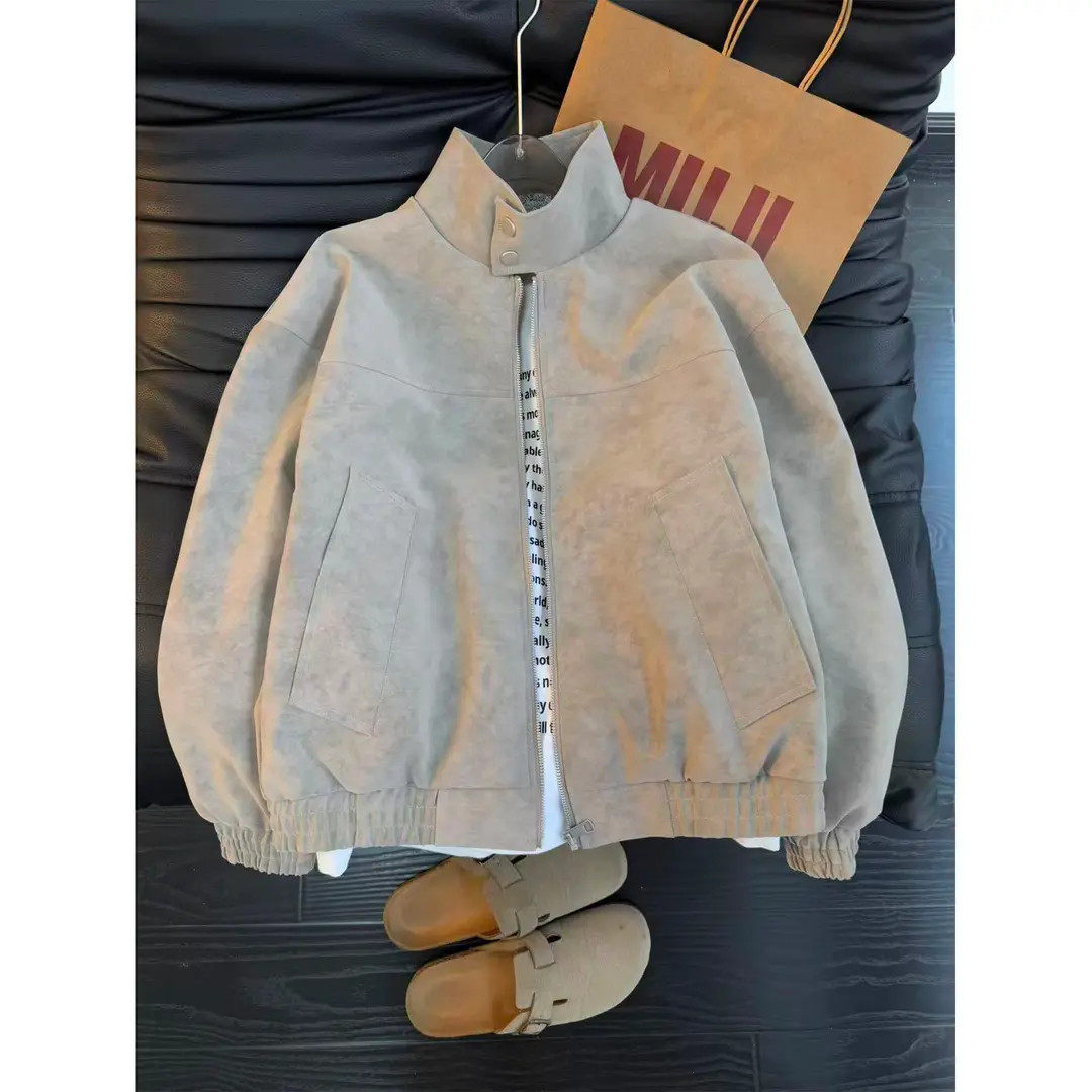 - 宽松皮衣外套女