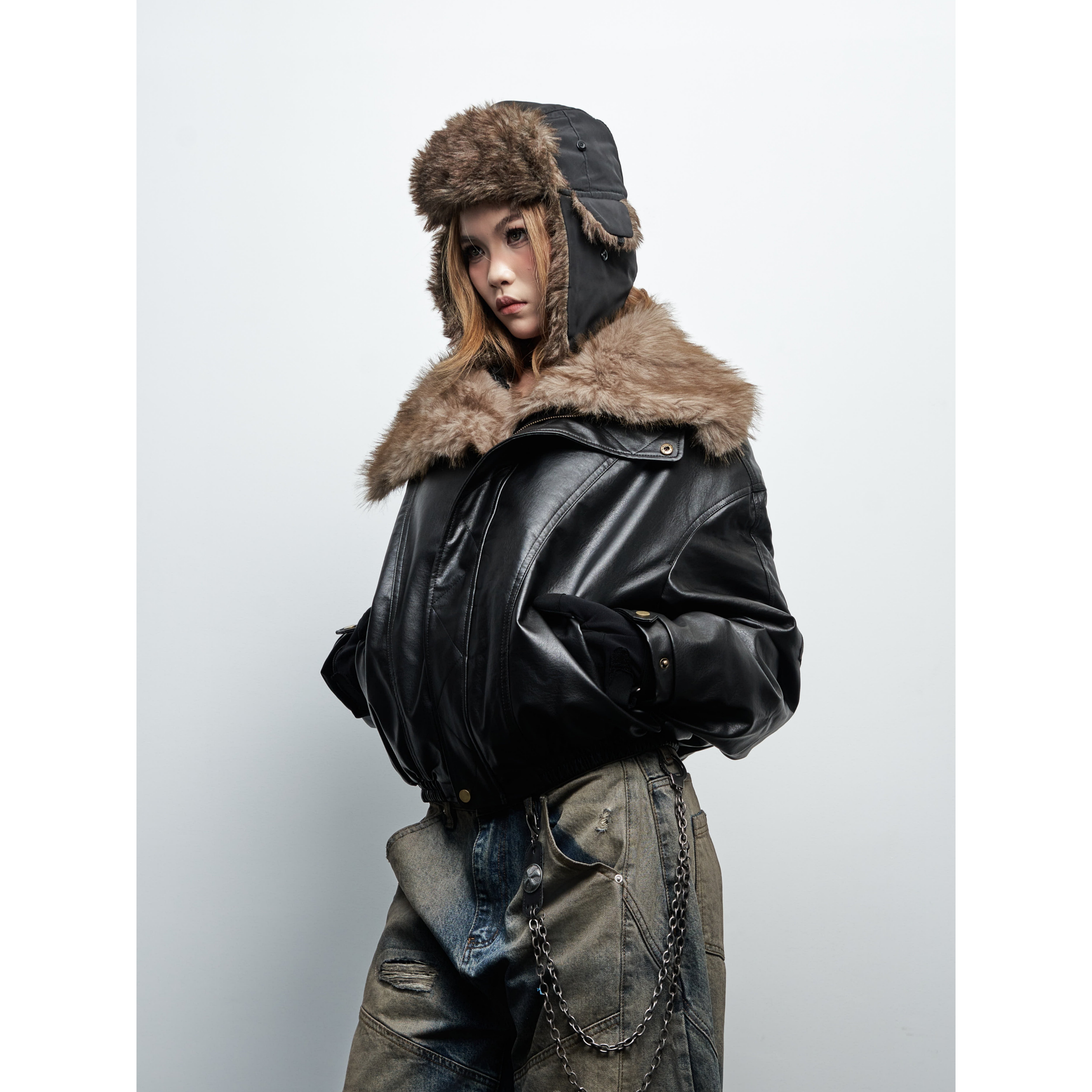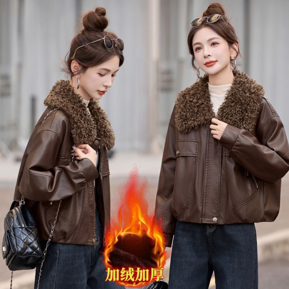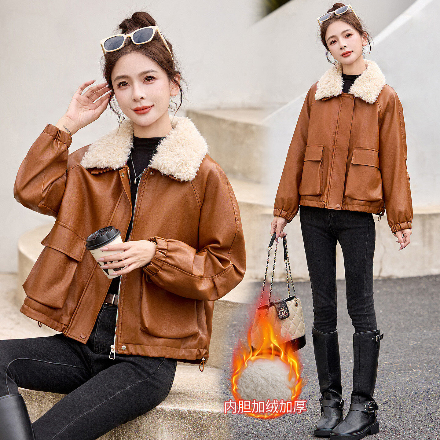 - 皮衣女加绒