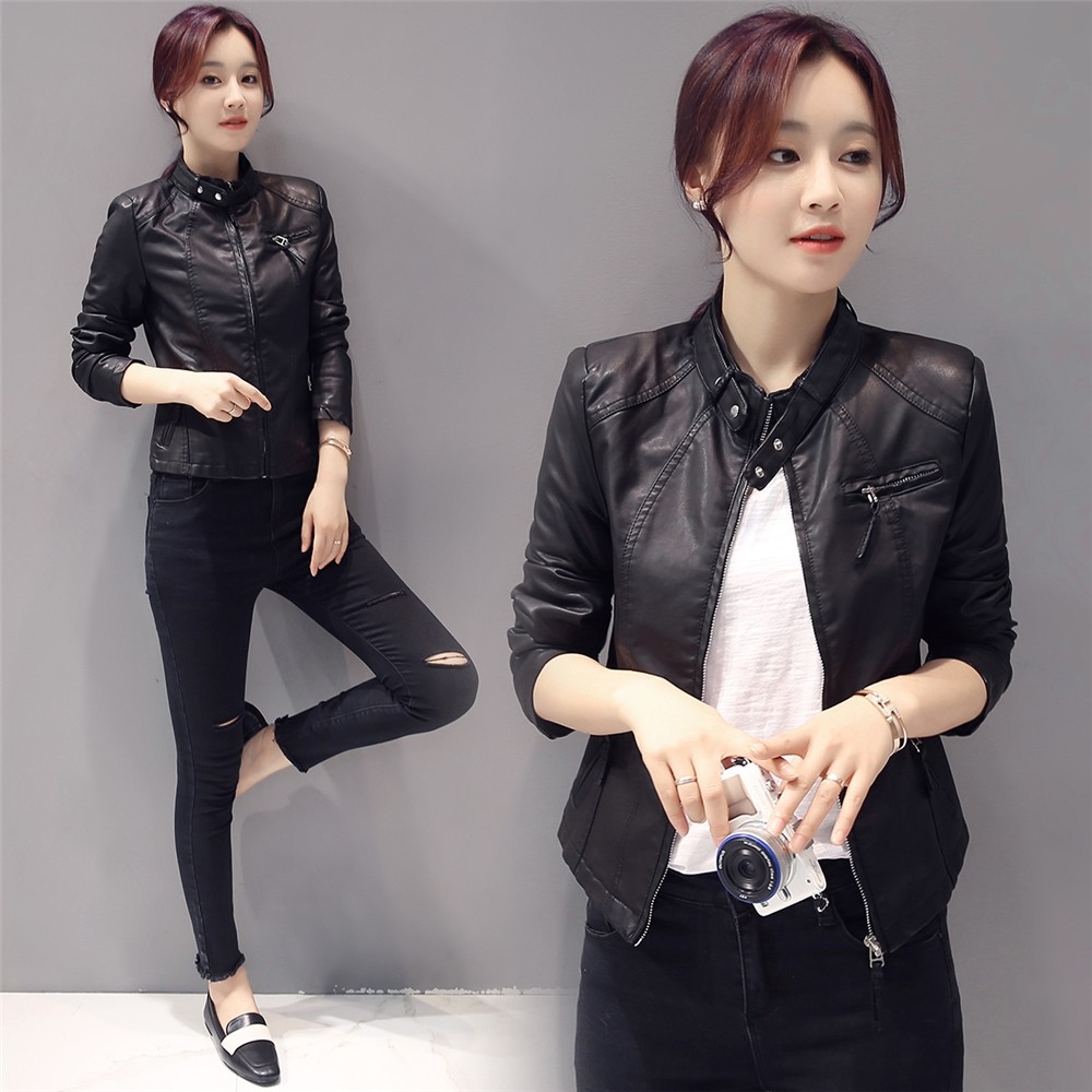 - 机车皮衣女短款