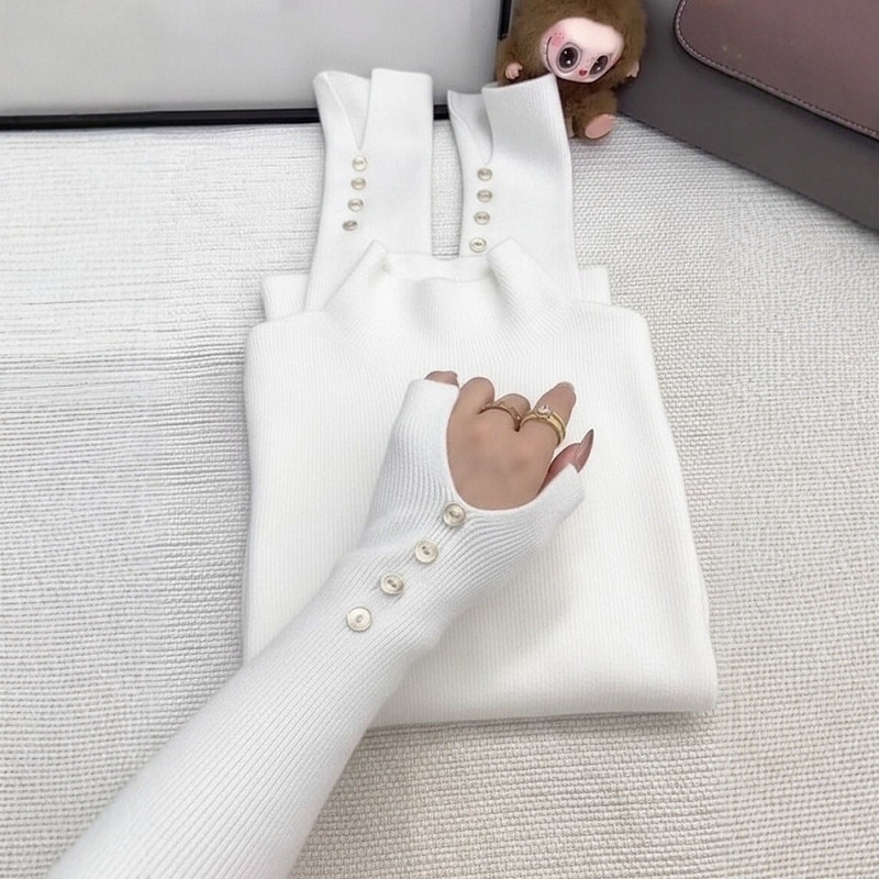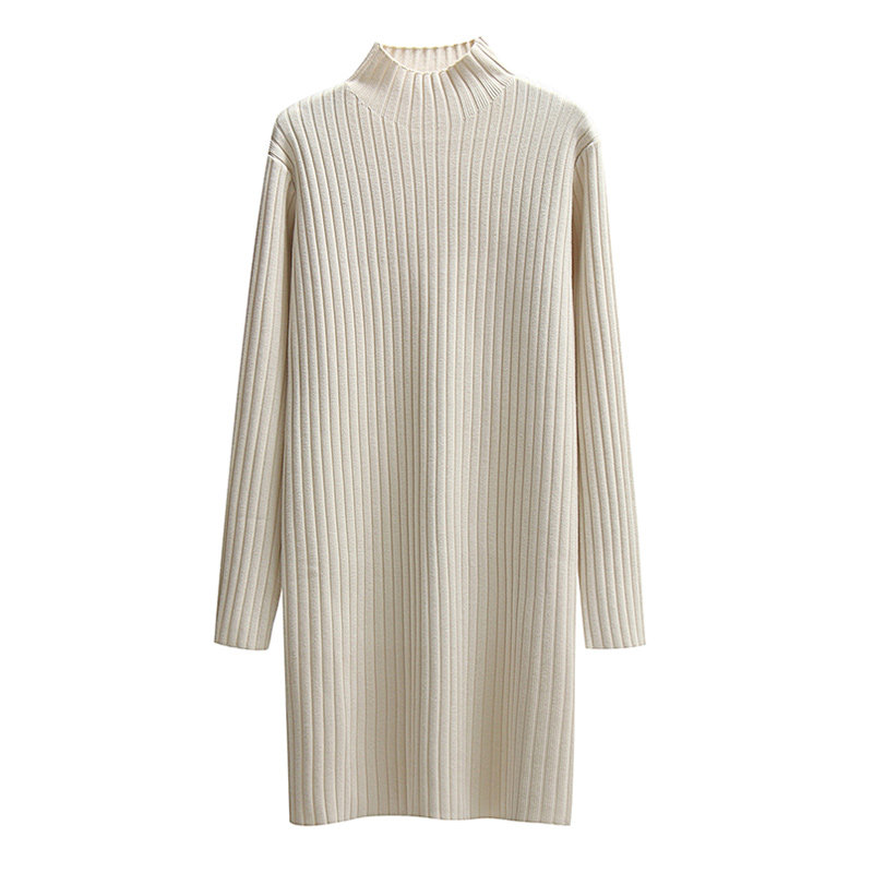 高领毛衣女秋冬收腰显瘦加厚中长款打底衫女白色内搭针织连衣裙女