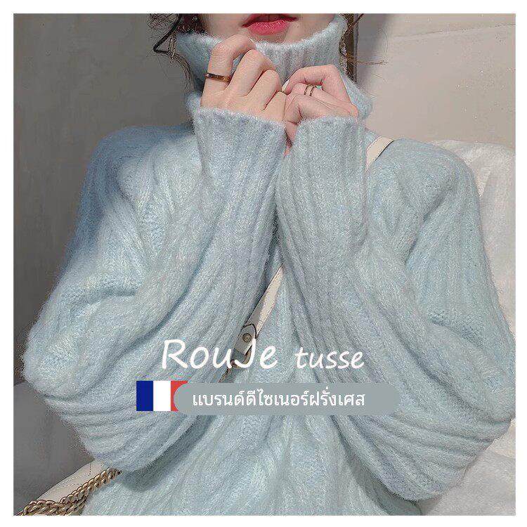 法国Rouje tusse高领白色内搭羊绒毛衣女宽松慵懒中长款羊毛加厚