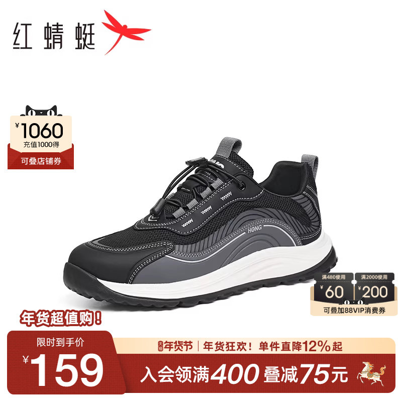 红蜻蜓男鞋2025夏季新款增高一脚蹬爸爸鞋男士运动跑步鞋网面鞋男