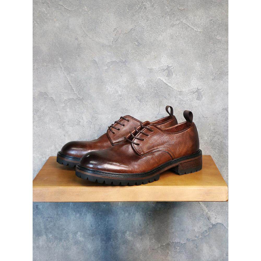 皮鞋男士正式商务德比鞋厚底增高男鞋夏季透气真皮休闲皮鞋棕色底