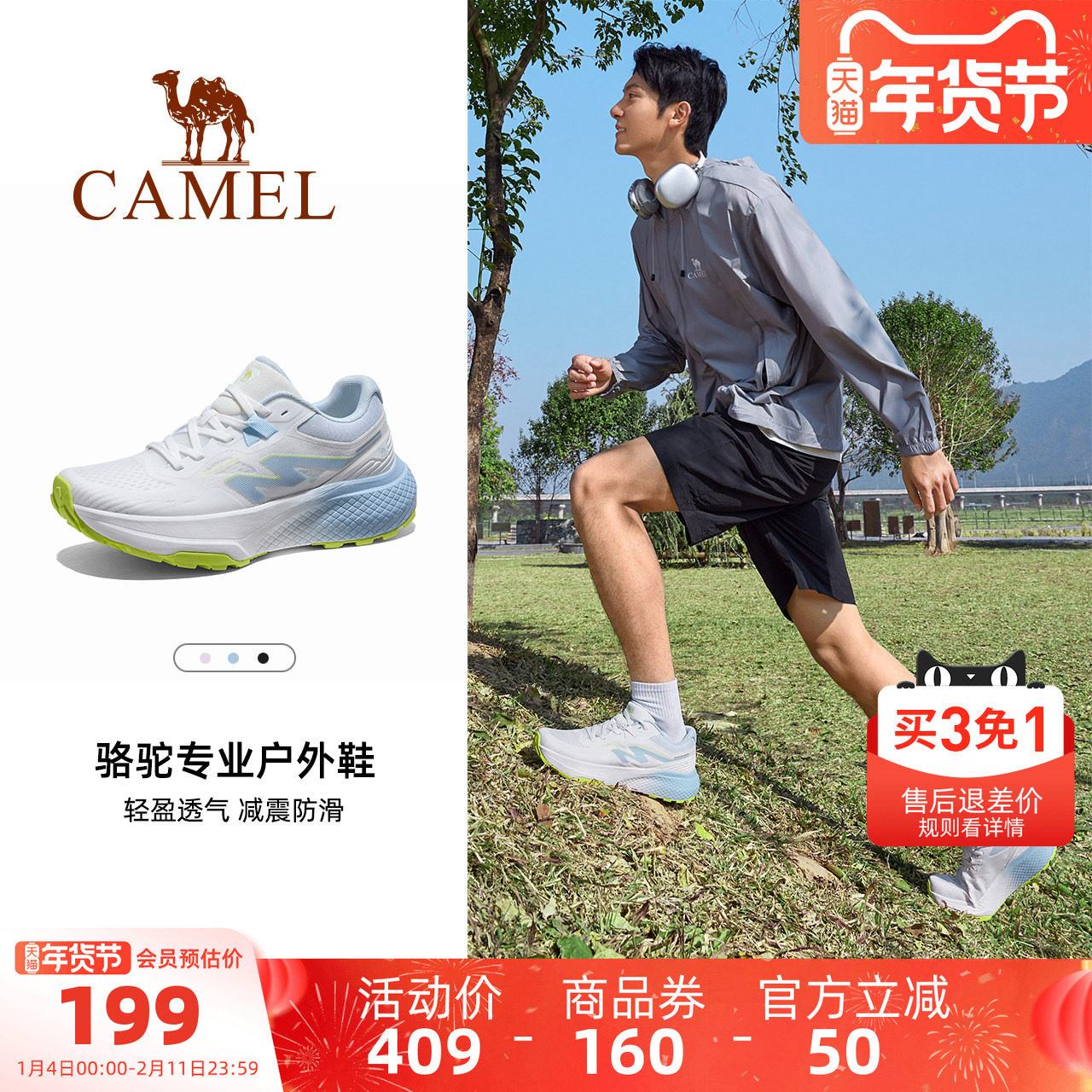 骆驼男鞋越野跑鞋2025夏季新款厚底增高耐磨防滑户外徒步登山鞋男
