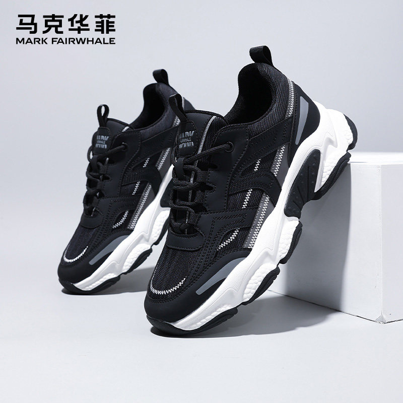 马克华菲男鞋2025夏季增高厚底防滑耐磨老爹鞋时尚简约舒适休闲鞋