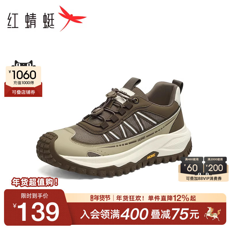 红蜻蜓休闲运动鞋2025夏季新款男鞋厚底增高跑步鞋男士透气慢跑鞋