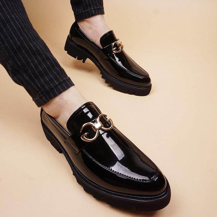 增高男鞋夏季尖头休闲鞋松糕厚底真皮皮鞋豆豆鞋内增高发型师鞋子