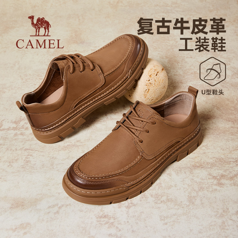 骆驼男鞋2026春夏季新款舒适增高休闲皮鞋男士复古英伦低帮工装鞋