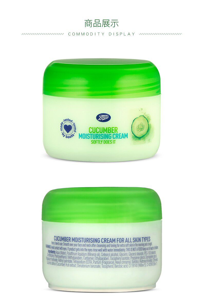 BOOTS英国小黄瓜保湿面霜100ml补水保湿不油腻修护保湿男女通用