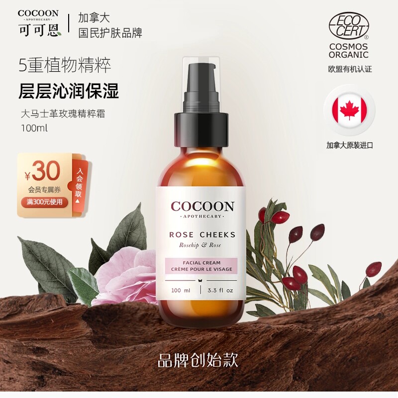 加拿大可可恩有机大马革玫瑰精粹霜紧致弹润滋润补水保湿抗老面霜