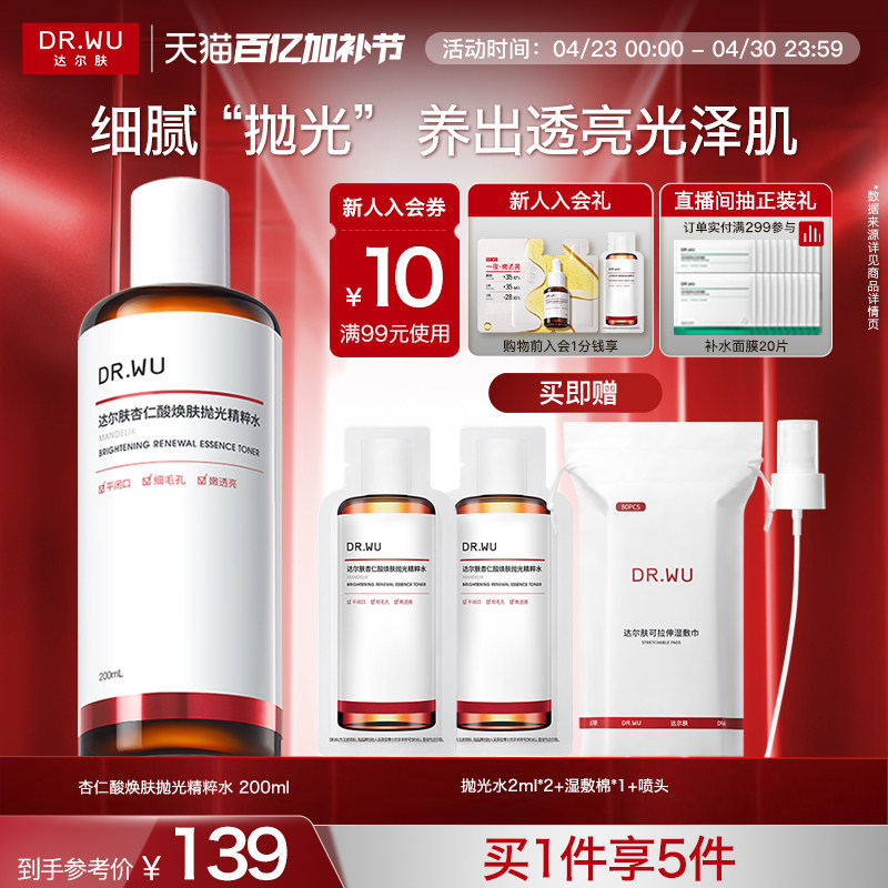 DR.WU达尔肤杏仁酸抛光水提亮爽肤水湿敷保湿补水喷雾闭口化妆水