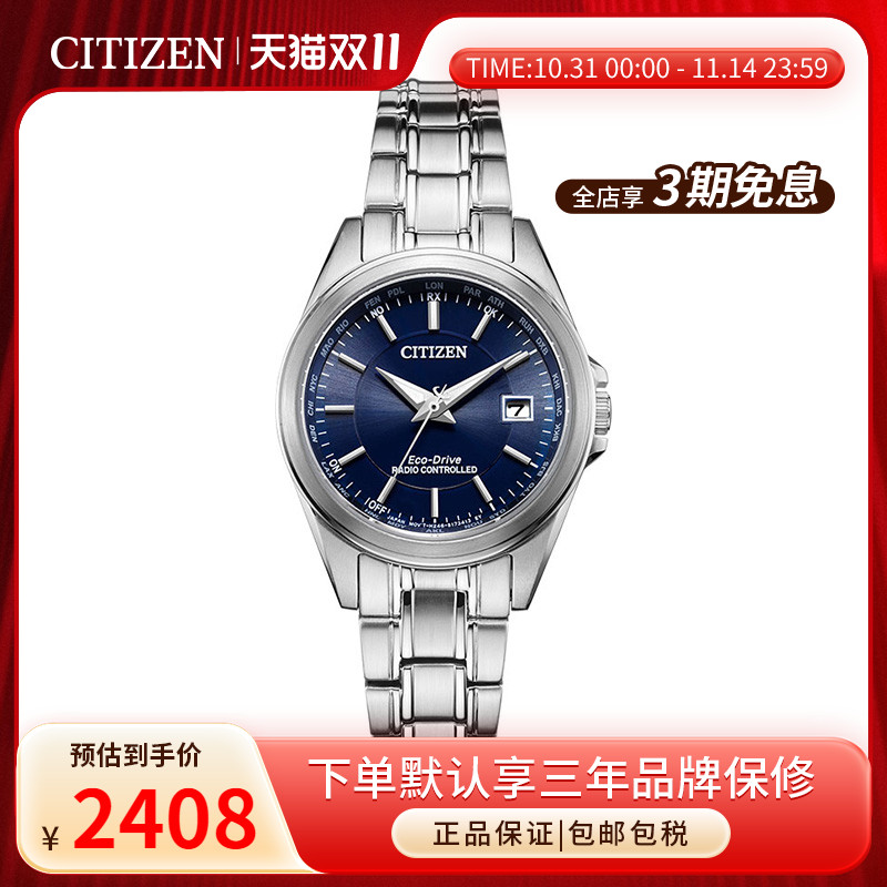 西铁城citizen光动能电波女表自动对时简约精致休闲表EC1180-81L