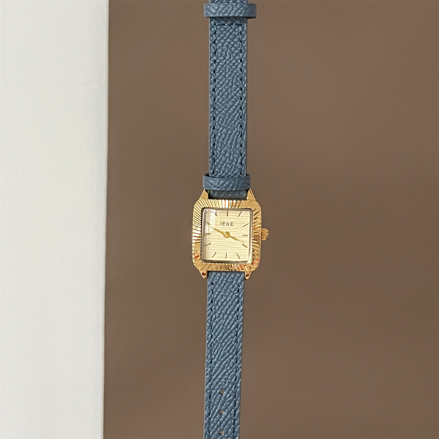 IEKE 秋冬高级蓝方形放射型条丁女士手表小众轻奢百搭通勤休闲表