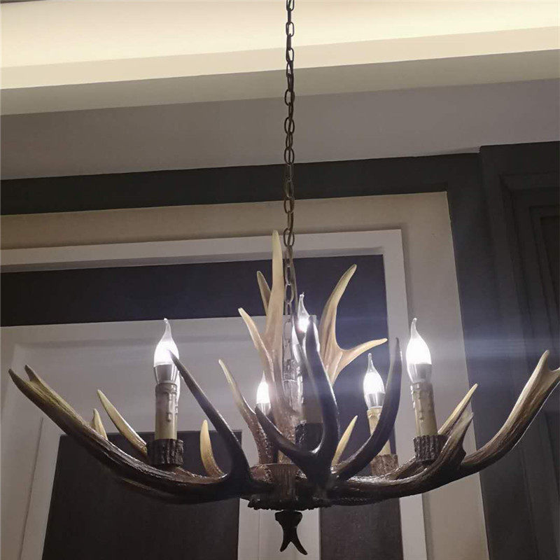 跨境货源仿古式3头鹿角吊灯客厅书房卧室酒店家居装饰5头鹿角灯