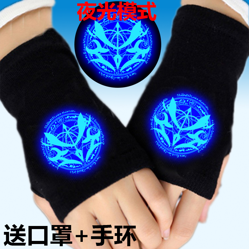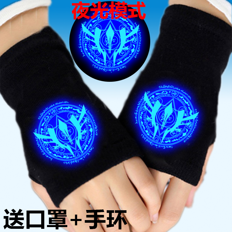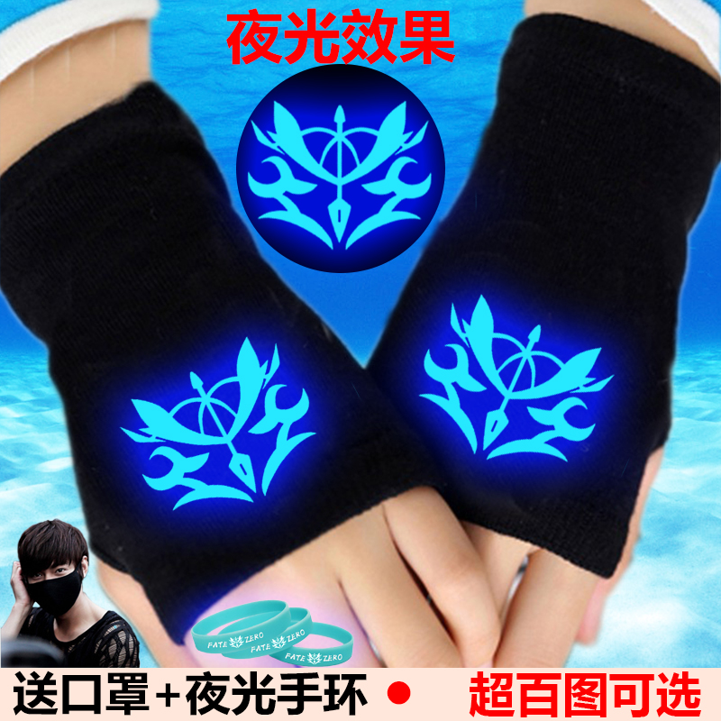 秋季保暖加厚Fate/zero切嗣令咒男女学生动漫夜光半指手套冬漏指