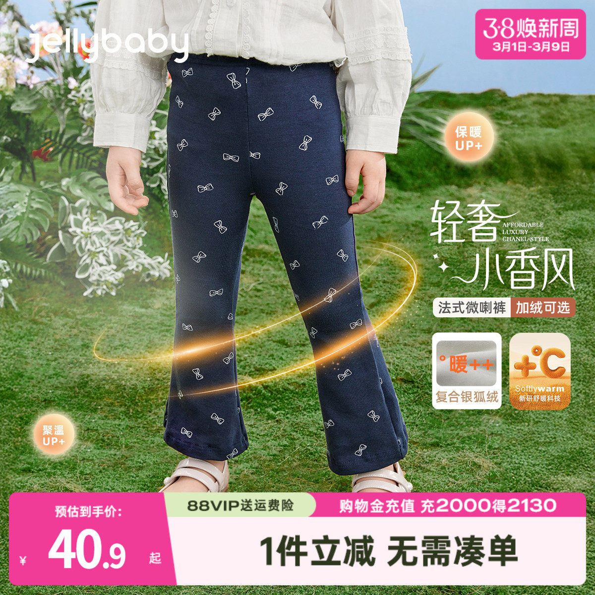 女童裤子儿童春夏新款宝宝长裤外穿春装小童满印喇叭裤女宝打底裤