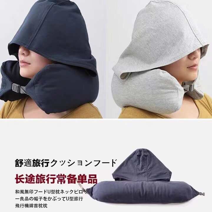 无印u型枕棉连帽枕u枕良品护颈枕午睡遮光帽汽车飞机旅行枕靠枕
