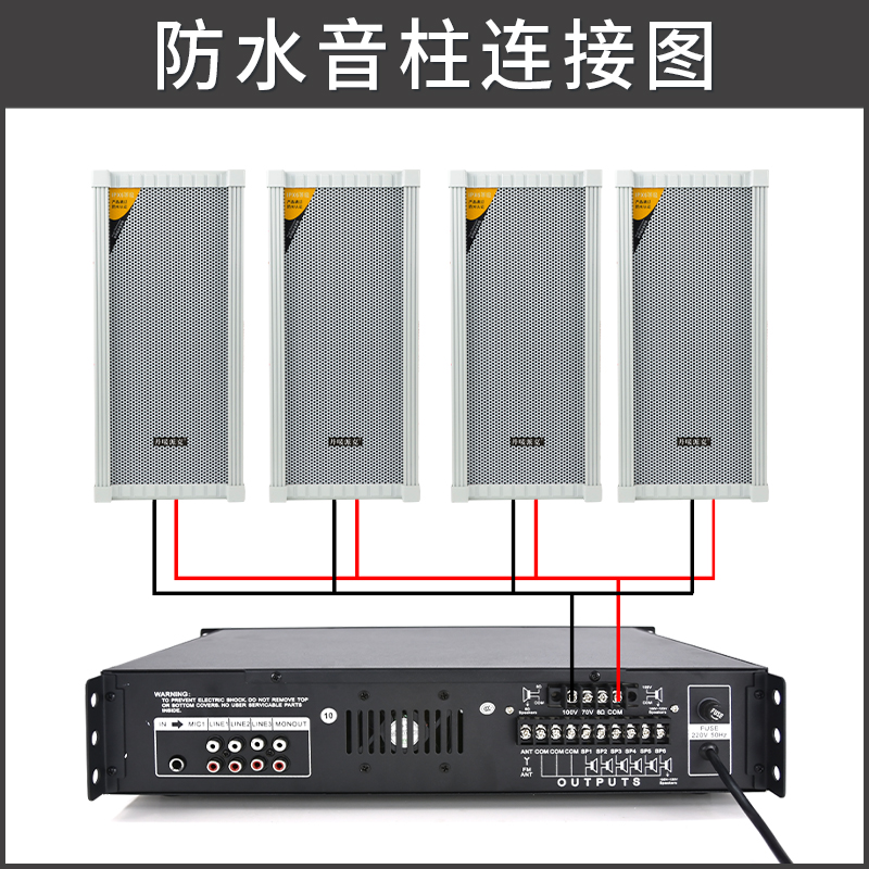 室外防水音柱壁挂喇叭套装分区定压功放背景音乐校园公共广播系统