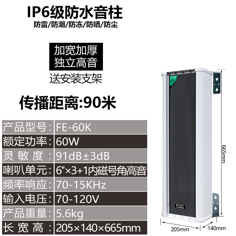 定压60W室外防水工程级公共广播广场操场全铝全天候室外防水音柱