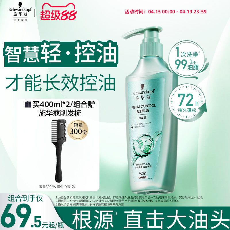 【百补】施华蔻控油洗发水60ml+去屑洗发水60ml(每个ID限1件)