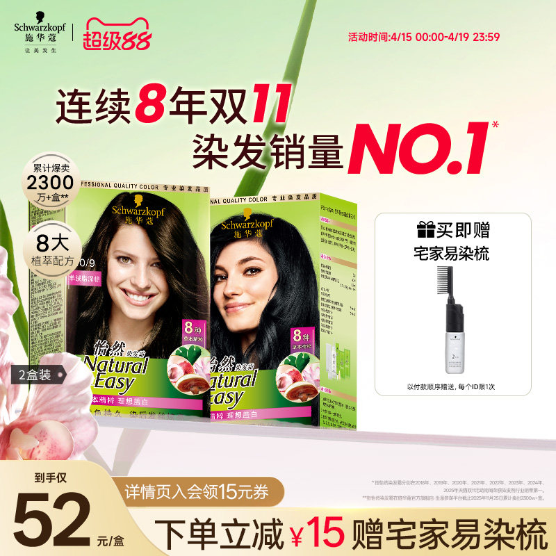 施华蔻染发膏染发剂自己在家染怡然无氨植物纯盖白黑茶色官方2盒
